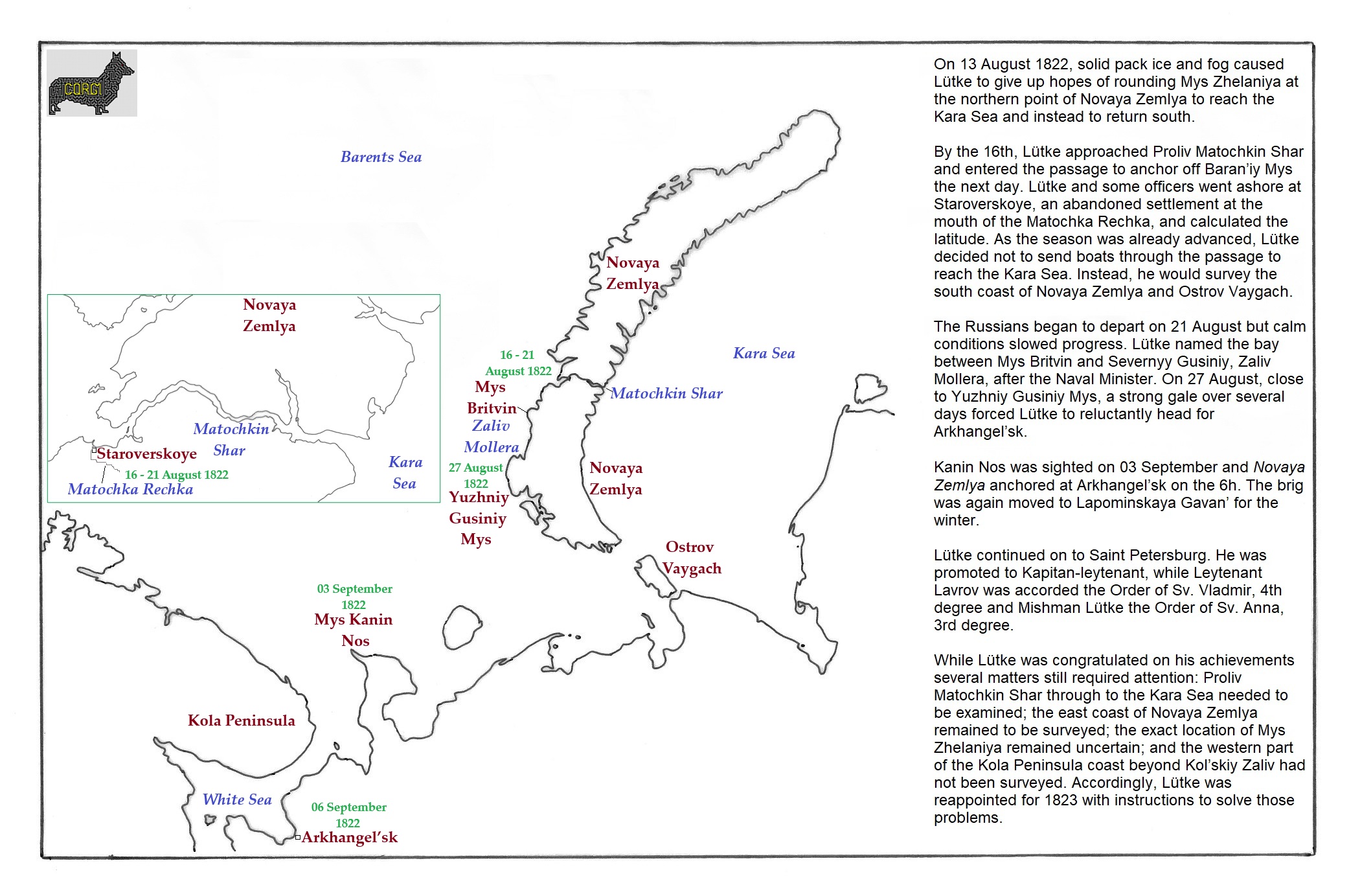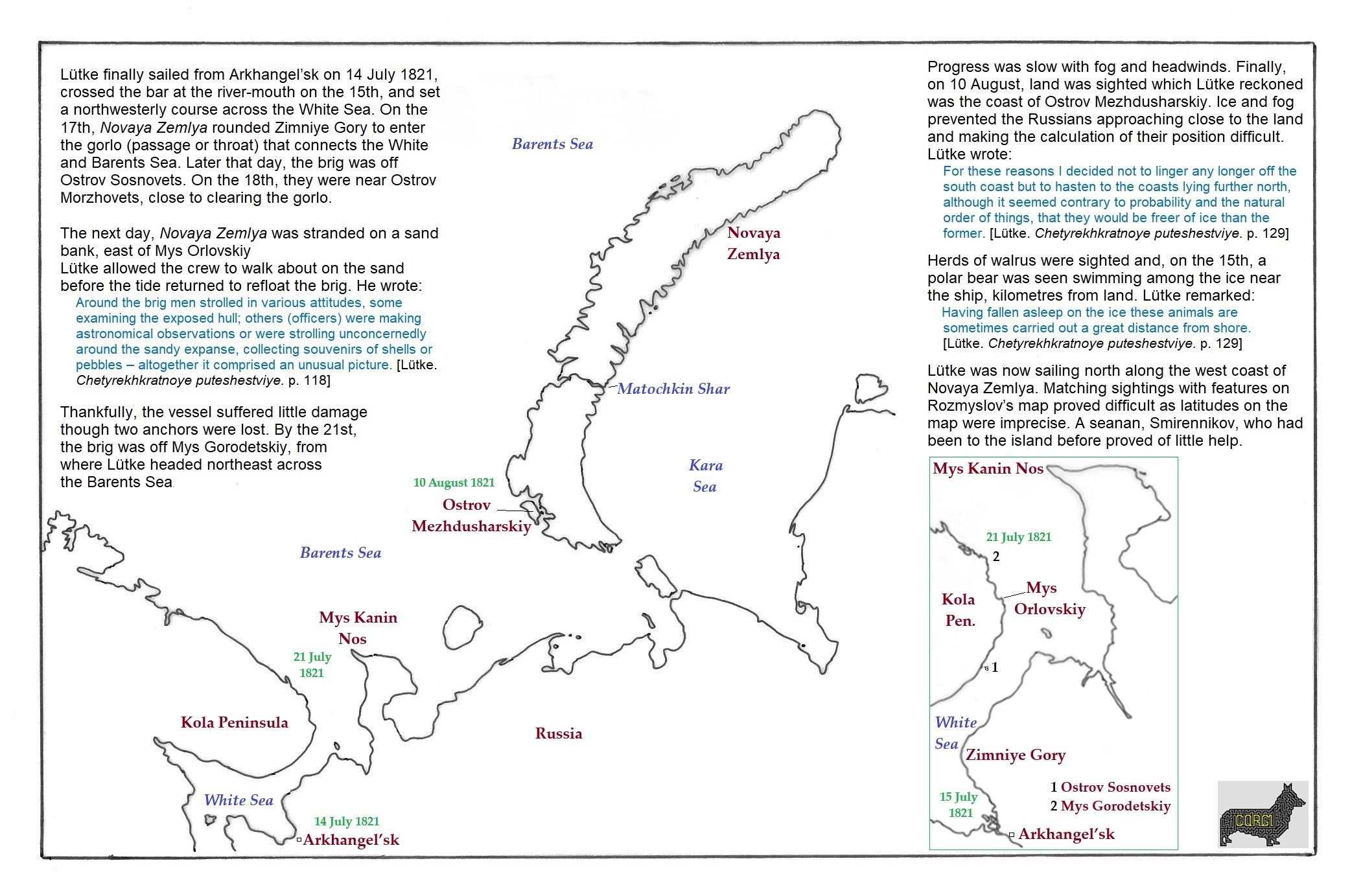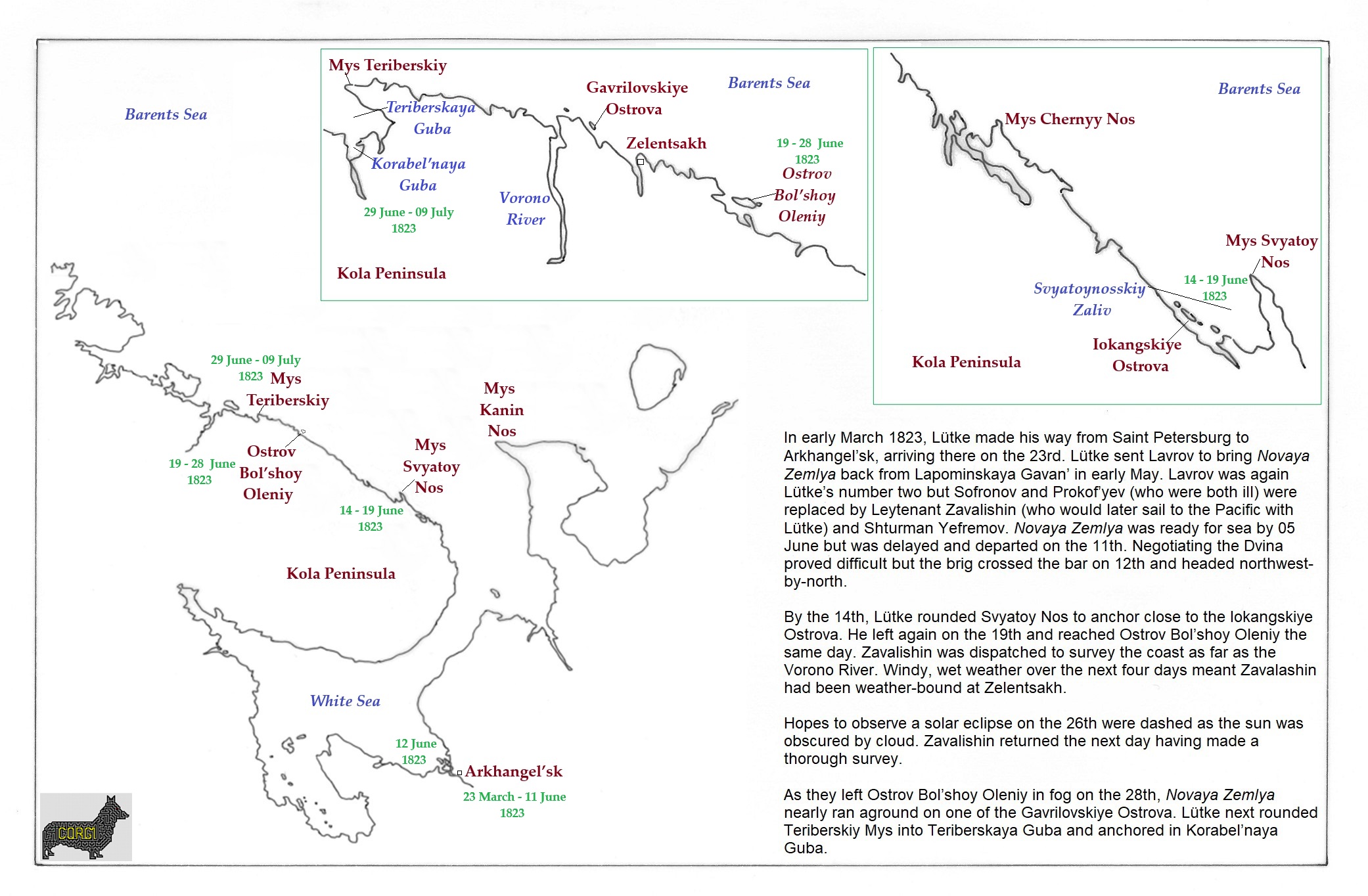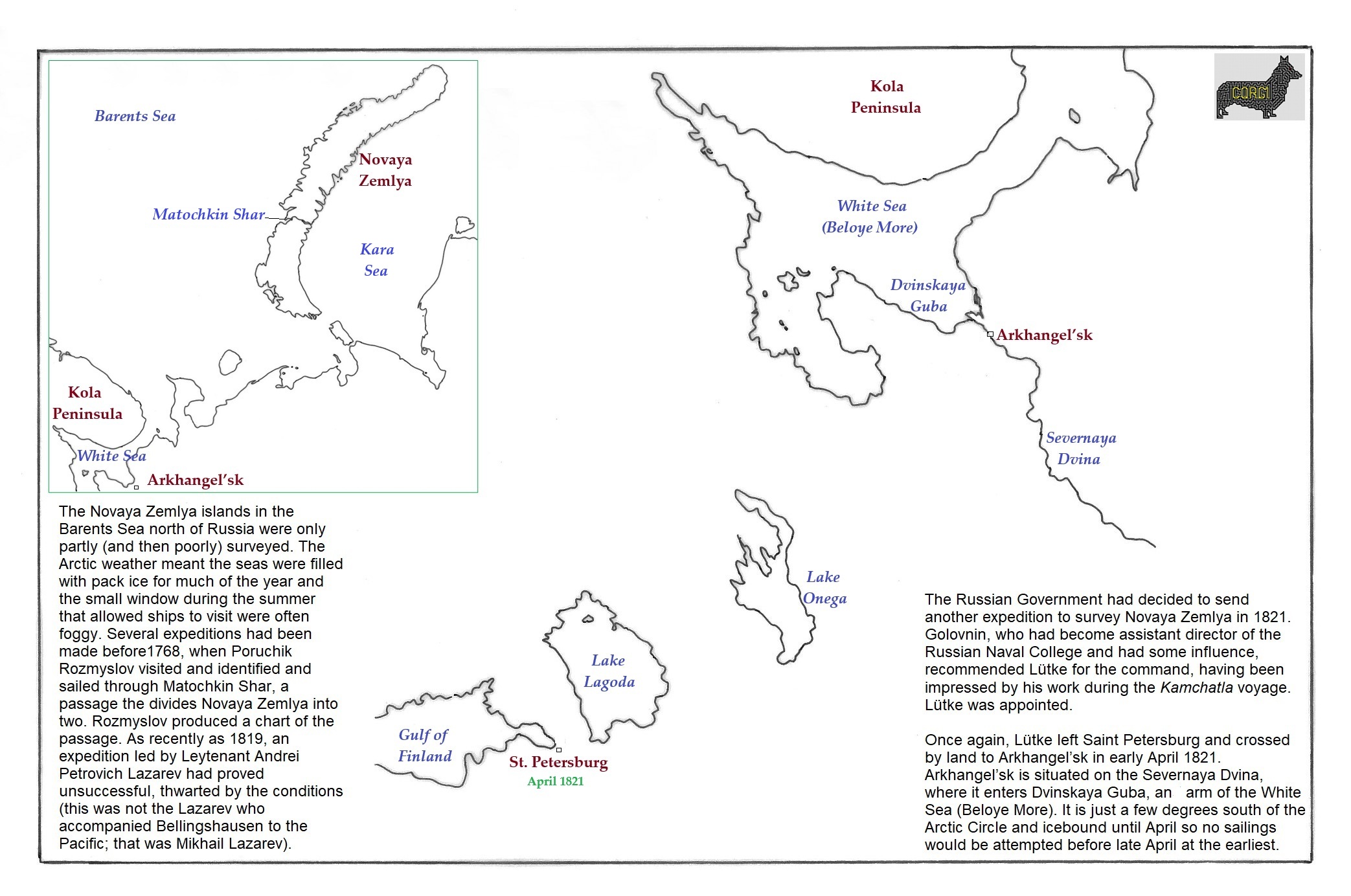 a: Novaya Zemlya to White Sea; b: Proliv Karskiye Vorota; c: Kaninskiy Poluostrov