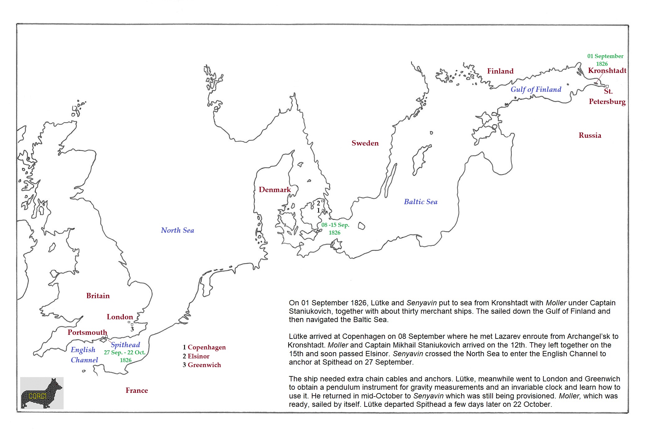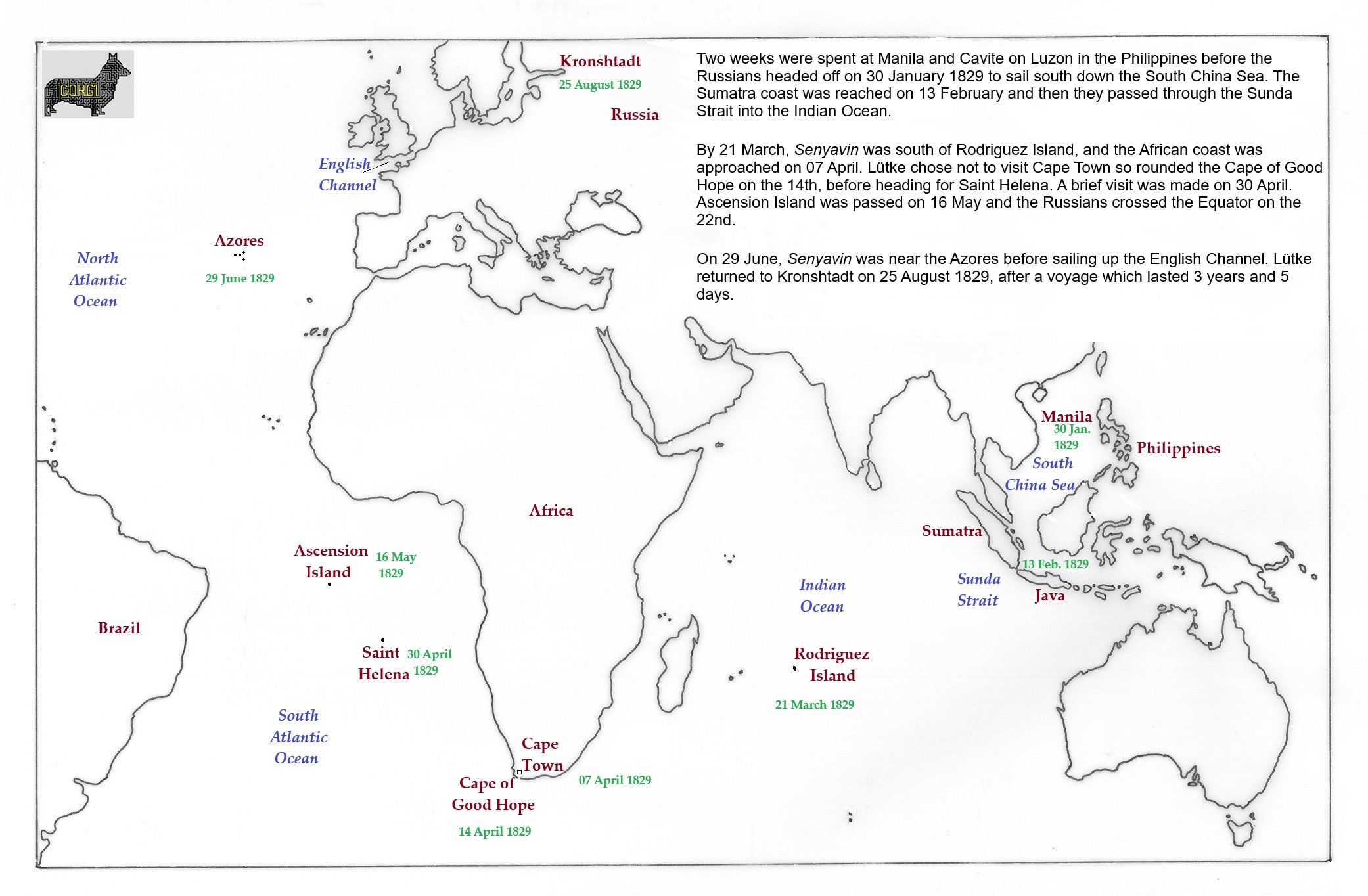 a: Atlantic Ocean – Spithead to Concepción; b: Madeira; c: Islas Canarias