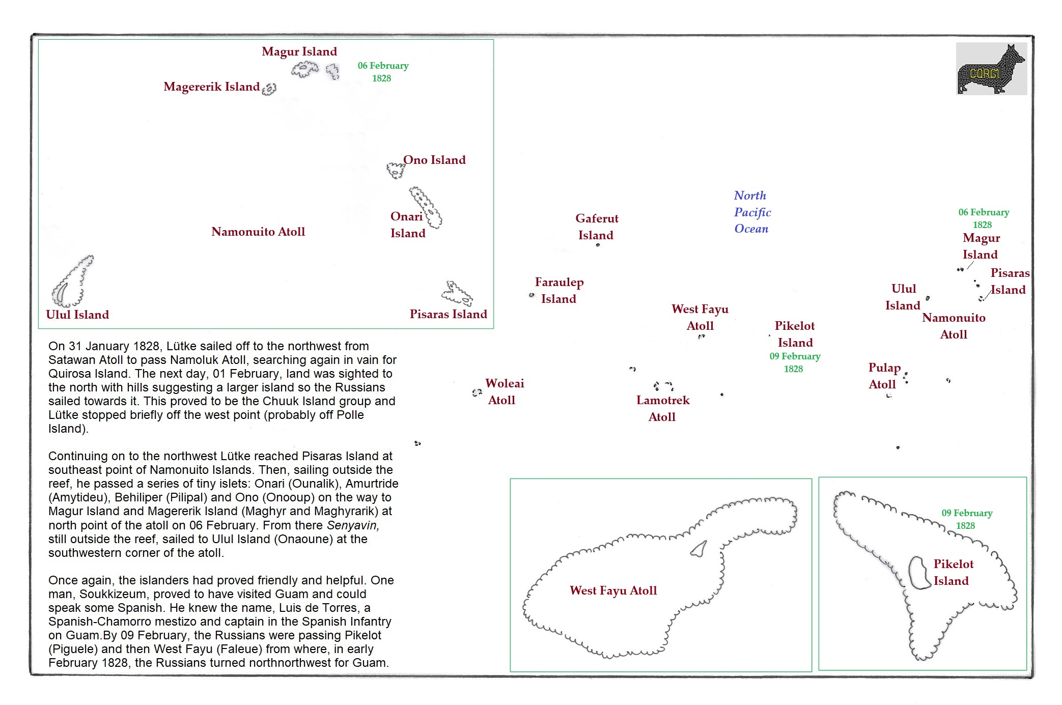 a: Namonuito Atoll to Faraulep Island; b: Namonuito Atoll; c: Pikelot Island; d: West Fayu Atoll