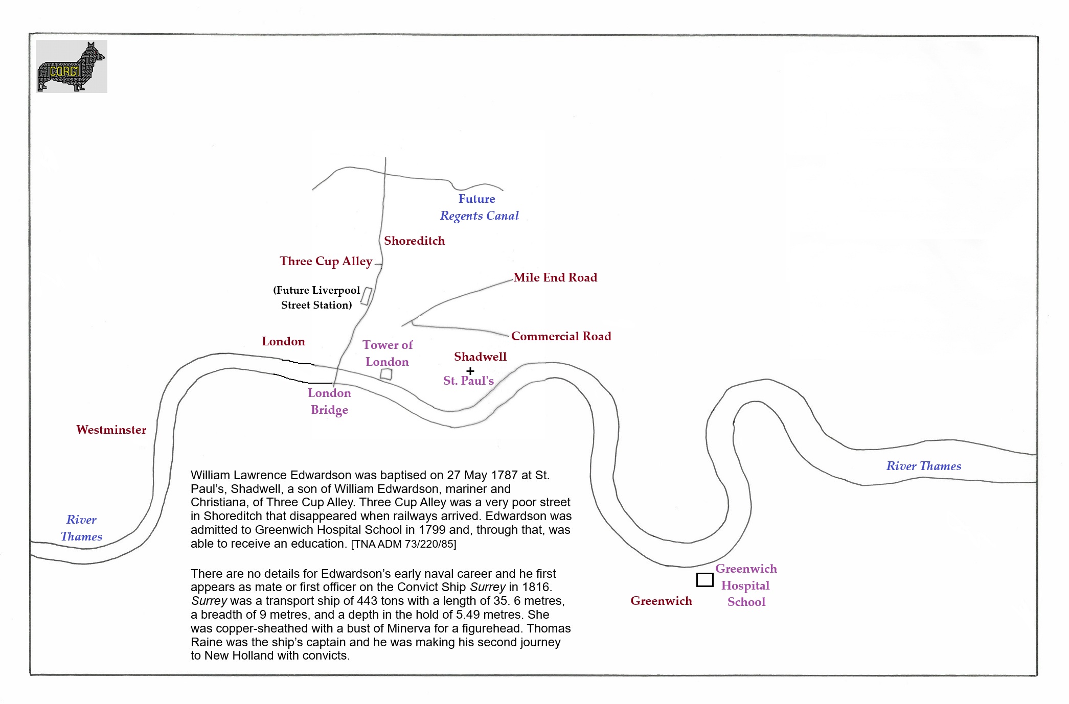 William Edwardson 9: a: Tasman Sea; b: Sydney Cove