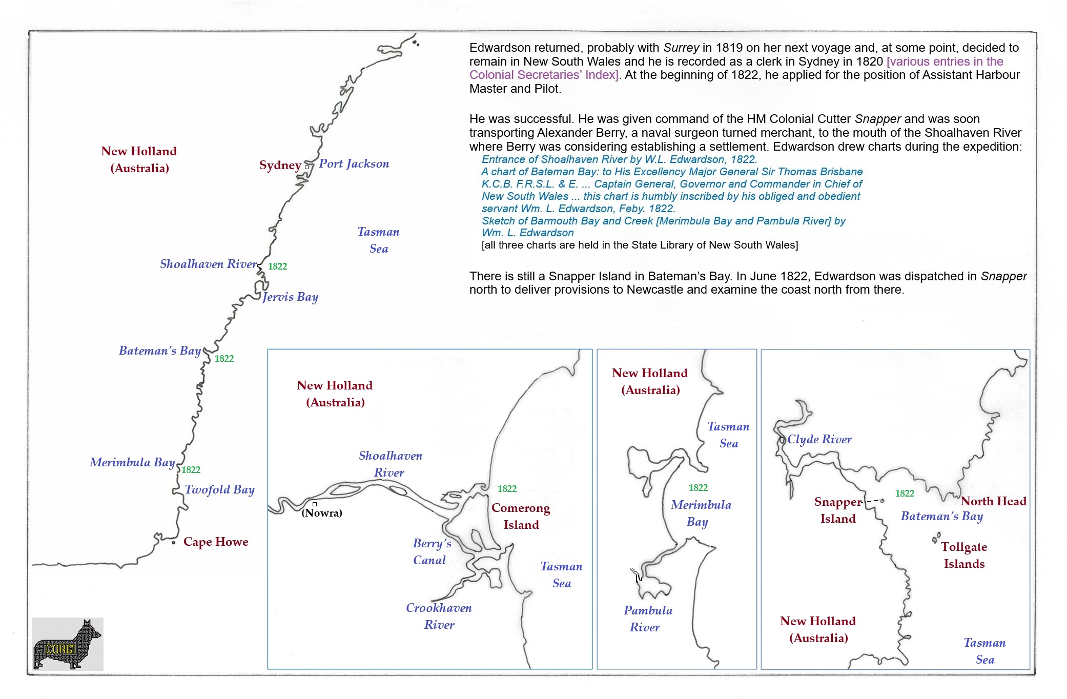 William Edwardson 3: a: Southeast New Holland; b: Shoalhaven; c: Merimbula; d: Bateman’s Bay