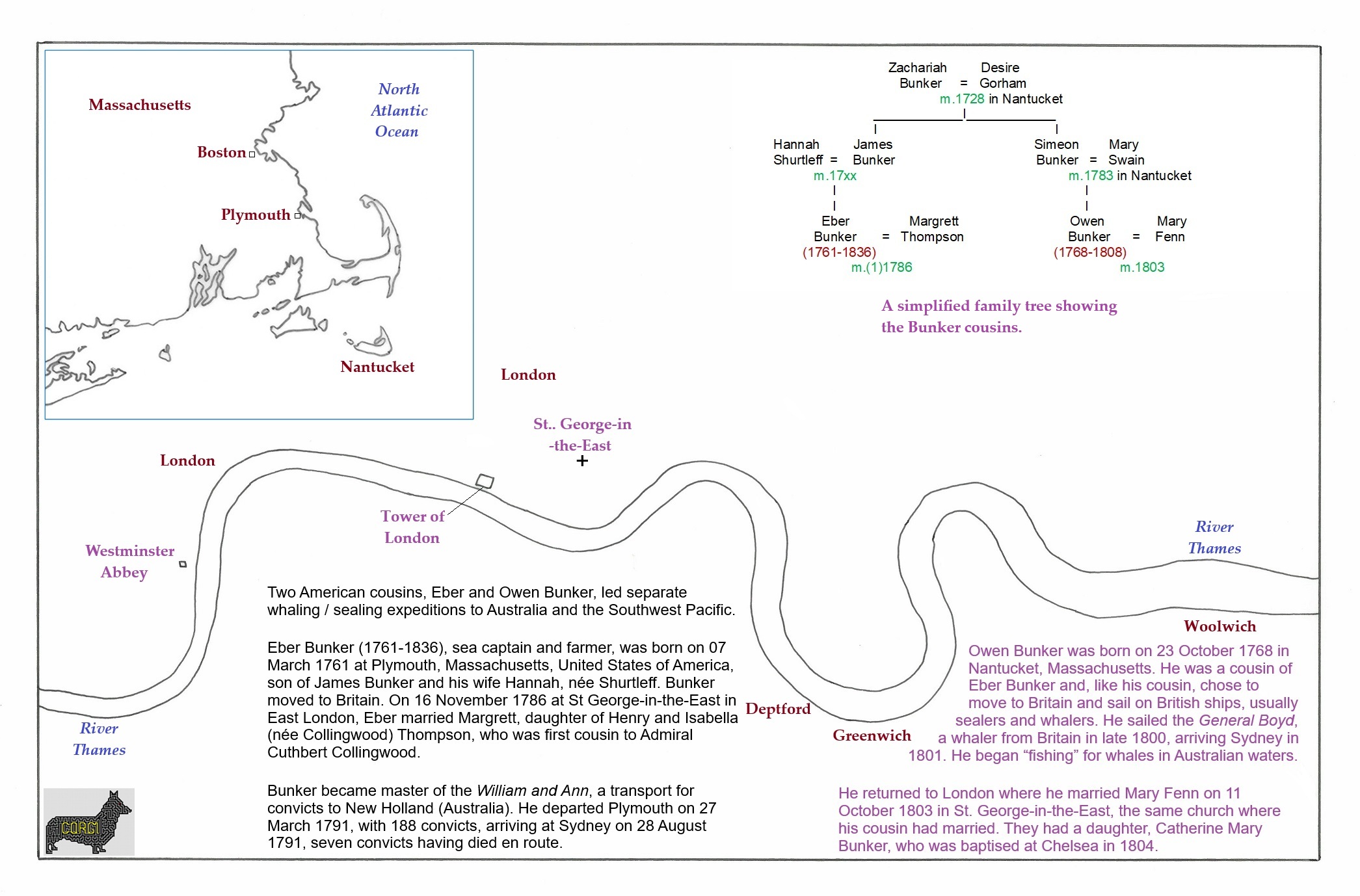 Eber Bunker 1: a: River Thames; b: Massachusetts