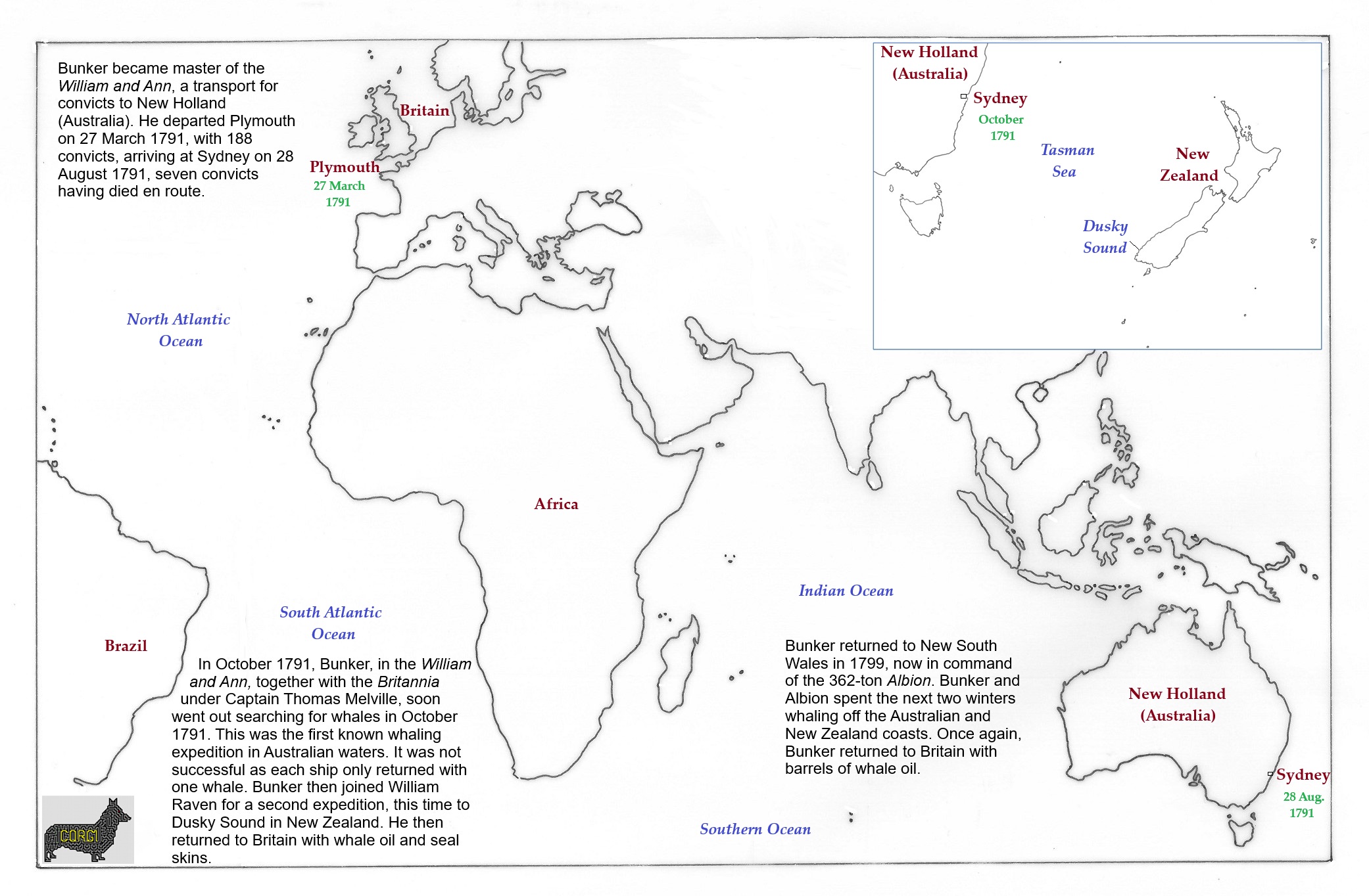 Eber Bunker 2: a: Britain to New Holland; b: Tasman Sea