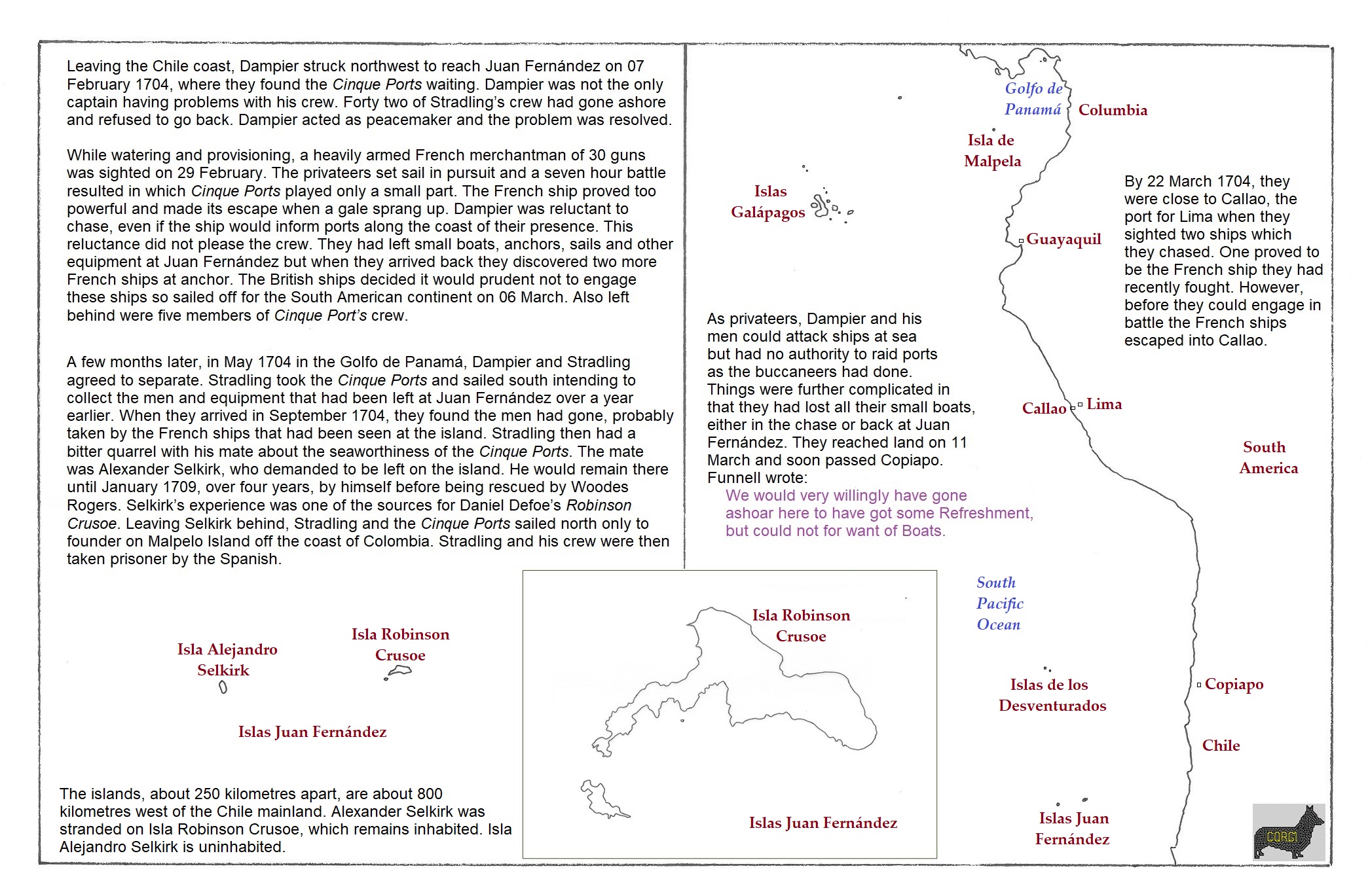 a: Islas Juan Fernández to Callao; b: Islas Juan Fernández; c: Isla Robinson Crusoe