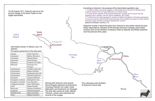 a: Nevskaya Bay – purpose of voyage; senior crew; departure from Kronshtadt