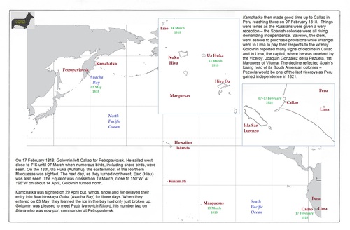 a: North Pacific: Callao to Kamchatka; b: Callao; c: Marquesas
