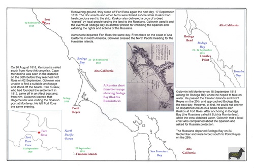 a: San Francisco Bay to Fort Ross; b: Fort Ross; c: Bodega Bay