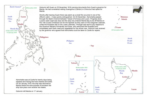 a: Guam to Philippines; b: Bashi Channel; c: Manila Bay