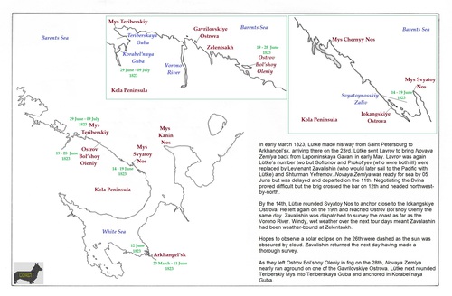 a: White Sea and Kola Peninsula; b: Mys Svyatoy Nos to Mys Chernyy Nos; c: Ostrov Bol’shoy Oleniy to Mys Teriberskiy