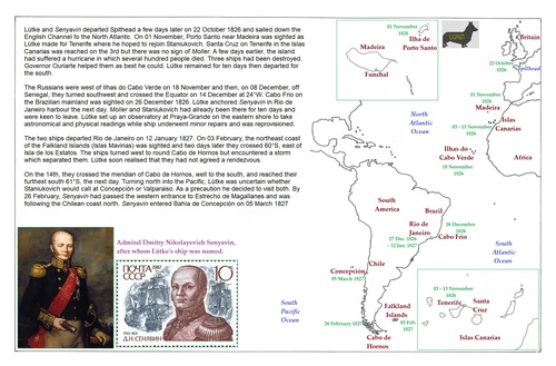 a: Atlantic Ocean – Spithead to Concepción; b: Madeira; c: Islas Canarias
