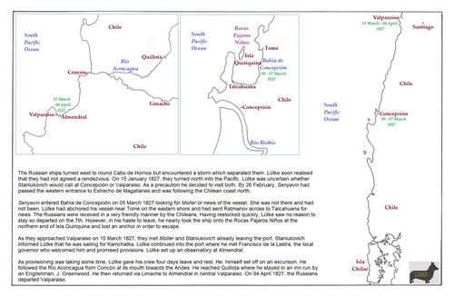 a: Chile coast; b: Bahía de Concepción; c: Around Valparaiso