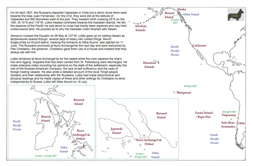 a: Valparaiso to Kruzof Island; b: Sitka Sound; c: Novo Arkhangel’sk (Sitka)