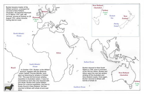 Eber Bunker 2: a: Britain to New Holland; b: Tasman Sea
