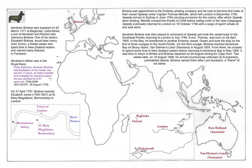 Abraham Bristow 1: a: Britain to New Holland; b: River Thames; c: Southeast England