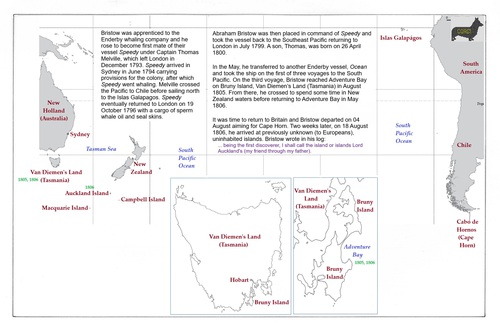 Abraham Bristow 2: a: South Pacific Ocean; b: Van Diemen’s Land (Tasmania); c: Bruny Island