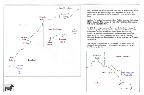 John Grono 5: a: Milford Sound; b: Milford Sound to Jackson Bay; c: Open Bay Islands