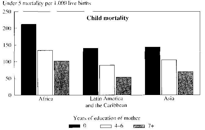 The social and economic losses are greatest when women are denied access to basic education and health care. Data from around the world show that private returns to investments in education are the same for women as for men and may even be marginally higher (Psacharopoulos 1994). More importantly. social returns (that is, total benefits to society) to investment in women's education and health are significantly greater than for similar investments in men, largely because of the strong correlation between women's education, health, nutritional status. and fertility levels and the education. health, and productivity of future generations. These correlation are even stronger when women have control over the way resources are allocated within the household.